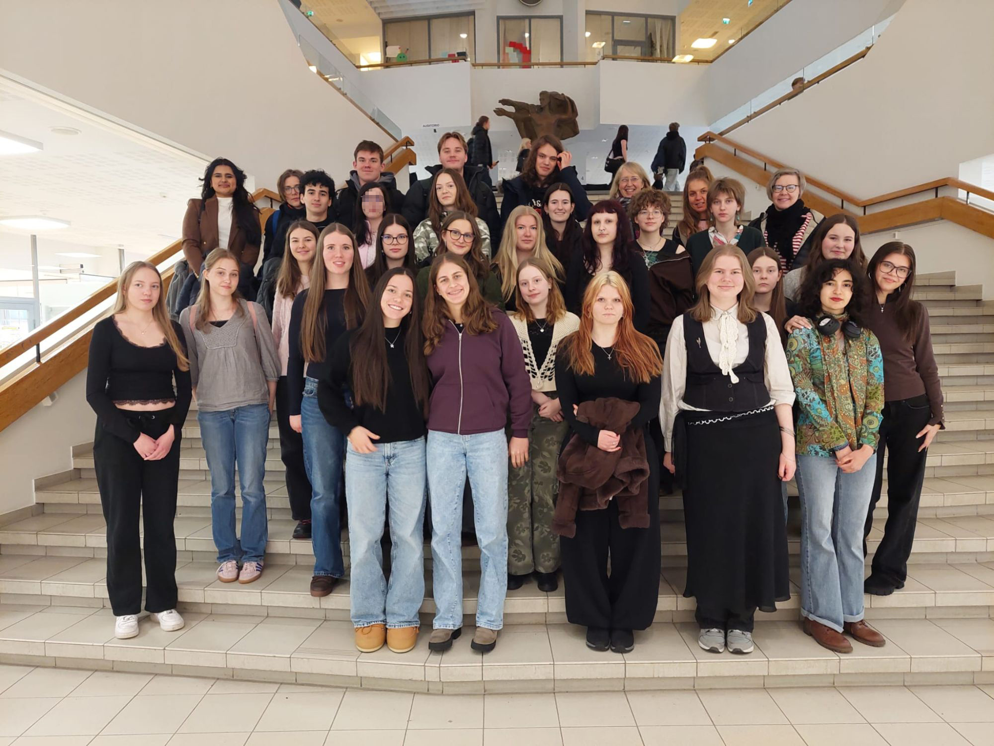 Im Januar waren 15 KS1 Schülerinnen und Schüler zum Gegenbesuch bei unserer langjährigen finnischen Partnerschule in Tampere zu Gast. Tief verschneite Landschaften, alte Industriegebäude mit Lichtinstallationen und vielseitige Winteraktivitäten machten die Woche unvergesslich. Ein besonderes Highlight war das Mitfiebern bei einem spannenden Eishockeyspiel sowie der Tagesausflug nach Helsinki. Die herzliche Gastfreundschaft der finnischen Schülerinnen und Schülern und deren Familien ermöglichte vielfältige Begegnungen, für die unsere Gruppe sehr dankbar ist - Kitoos!