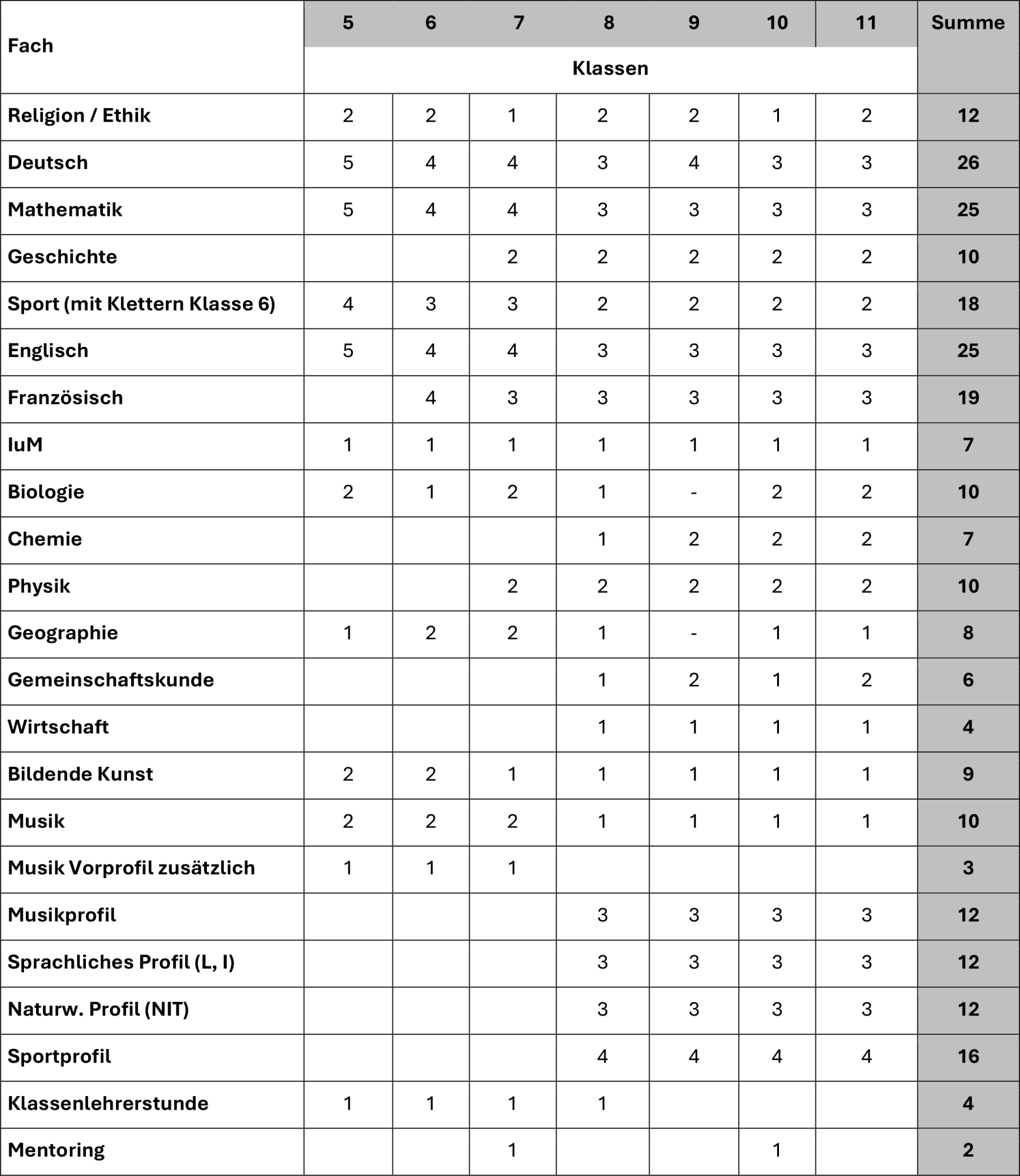 - Sport: Im Sportprofil geht es um Bewegung, Training und Teamgeist. Neben Spielsportarten werden auch Theorie, Trainingslehre und Gesundheit thematisiert – ideal für Kinder, die gerne aktiv sind und Verantwortung im Team übernehmen wollen.